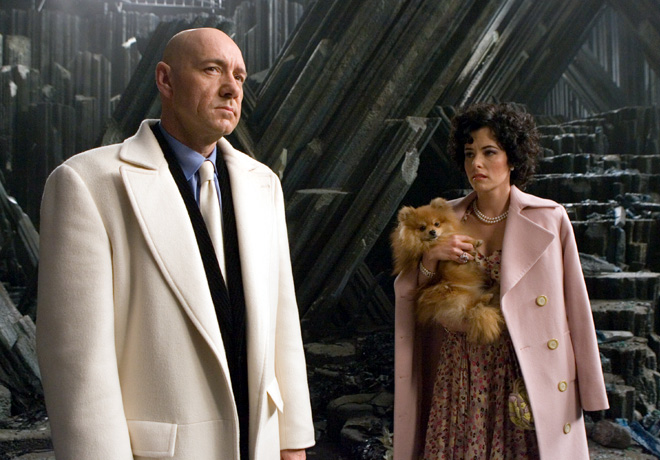Por esos días, luego de haber pasado un tiempo tras las rejas, Lex Luthor -encarnado por el multifacético Kevin Spacey- recupera su libertad y trata de llevar a cabo su plan: robar conocimiento y tecnología kryptoniana de la «Fortaleza de la Soledad» para utilizarla con fines maléficos. Para lograr su objetivo, Lex cuenta con la ayuda de Kitty Kowalski (Parker Posey) y unos cuantos secuaces de turno.