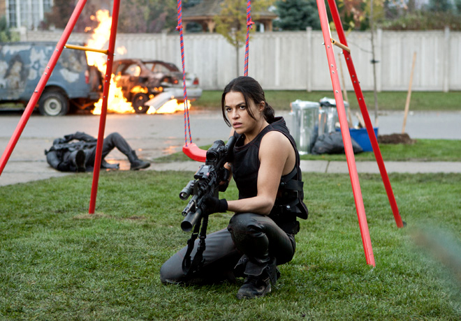 Nuevamente bajo las órdenes de su esposo, el realizador Paul W.S. Anderson (director de tres de las pelÃculas que conforman la saga y responsable de los guiones y de la producción de todas), la ex-modelo, actriz y cantante ucraniana vuelve a deleitarnos con este personaje que se desquita con todo -y contra todos- en el comienzo de la batalla final contra Umbrella, la más grande corporación responsable de los estragos que sigue causando el virus-T, cuya particularidad es que los infectados al morir se transforman en zombies.