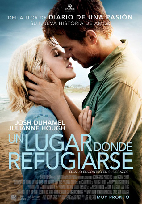 «Un Lugar donde Refugiarse» (Safe Haven) es una presentación de Energía Entusiasta. Dirigida por Lasse Hallström. Protagonizada por Josh Duhamel, Julianne Hough, Cobie Smulders, David Lyons, Mimi Kirkland y Noah Lomax. Un guión de Dana Stevens y Gage Lansky, basado en la novela «Safe Heaven» escrita por Nicholas Sparks.