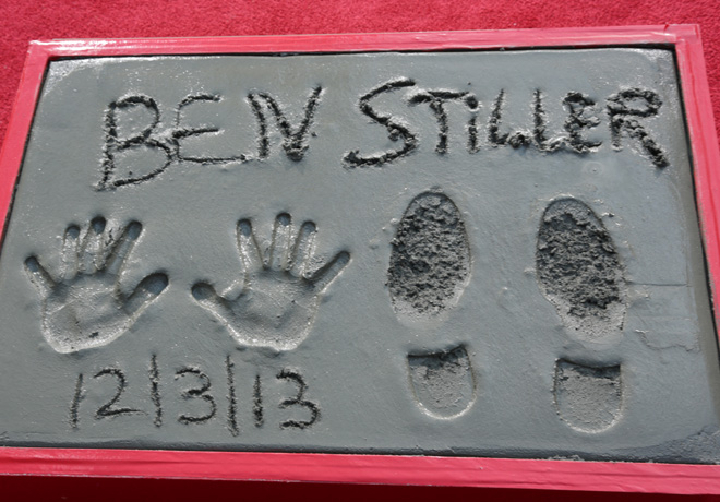 Ben Stiller dejó sus huellas en el Paseo de la Fama de Hollywood. En una ceremonia que se realizó el Martes 3 de Diciembre en las afueras del famoso Teatro Chino, el actor que debutó en la actuación en el año 1986 (fue en la serie de TV «Kate & Allie») no sólo imprimió las huellas de sus manos sino también las de sus zapatos.