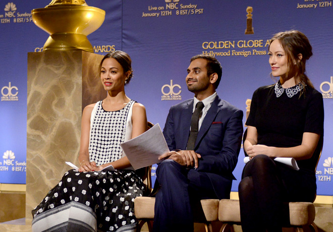 Dos días después de conocerse las nominaciones a los SAG, se conocieron los aspirantes a estos galardones. Los encargados de dar a conocerlas fueron las actrices Zoe Saldana y Olivia Wilde, quienes, en esta labor, estuvieron acompañadas por el comediante Aziz Ansari. El trío fue presentado por el presidente de la HFPA, Theo Kingma, en el Beverly Hilton Hotel.