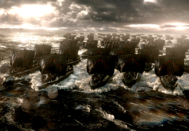 Se trata de la batalla de Artemisio, la cual consistió en una serie de enfrentamientos navales que transcurrieron durante tres días en el contexto de la Segunda Guerra Médica. La misma tuvo lugar al mismo tiempo que el enfrentamiento terrestre de Termópilas, en el 480 a. C. que vimos en la cinta predecesora y que todos sabemos cómo terminó.