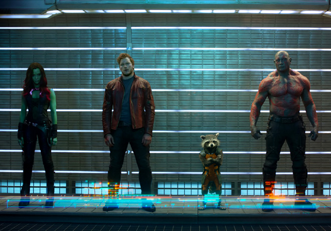 «Guardianes de la Galaxia» (Guardians of the Galaxy) es una presentación de Walt Disney Studios Motion Pictures. Dirigida por James Gunn. Protagonizada por Chris Pratt, Zoe Saldana, Dave Bautista, Lee Pace, Michael Rooker, Karen Gillan, Djimon Hounsou, John C. Reilly, Glenn Close y Benicio Del Toro. Con las voces de Vin Diesel como Groot y Bradley Cooper como Rocket. Un guión de James Gunn, sobre una historia de Nicole Perlman y James Gunn, basada en el comic de la Marvel creado por Dan Abnett y Andy Lanning.