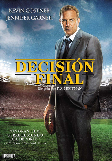 El Viernes 17 de Octubre, Transeuropa finaliza el mes de lanzamientos en DVD. Lo hace con el drama deportivo «Decisión Final» (Draft Day), directo a video, junto con «Oldboy: DÃa de Venganza» y «Amor a la Carta», tÃtulos que se estrenaron en los cines de la Argentina. El film dirigido por Ivan Reitman («Los Cazafantasmas», «Junior», «Amigos con Derechos») y protagonizado por Kevin Costner y Jennifer Garner, desarrolla una trama sobre el fútbol americano.