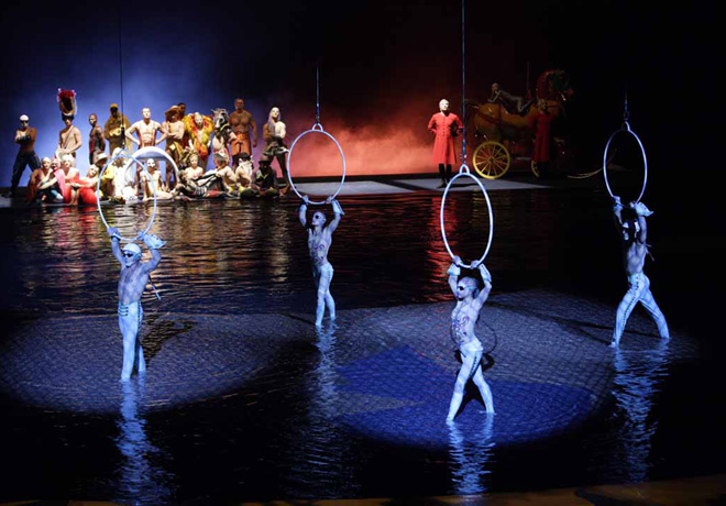 «Flow» es una inmersión poética en las profundidades de este espectáculo de Cirque du Soleil en Las Vegas. Explora una meditación de la presencia humana en el planeta, como los artistas comparten sus experiencias y emociones en ese momento por excelencia de un acto.
