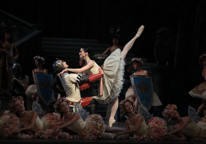 Con un final grandioso, pantomima, pas de deux líricos y un cuerpo de baile a la medida del desafío. Sobre la base de los archivos de la Universidad de Harvard, los diseños originales alojados en el Museo y la Biblioteca del Teatro alla Scala, este teatro presenta la última gran obra de los días de gloria del Ballet Imperial. Intérpretes: Olesia Novikova (Raymonda), Friedemann Vogel (Jean de Brienne).
