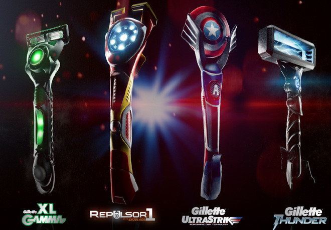 No podrán convertirse en verdaderos superhéroes, pero los hombres podrán -al menos- afeitarse como uno gracias a la tecnologÃa de las Industrias Stark y «Los Vengadores» (The Avengers). Casi casi coincidiendo con el estreno de la nueva entrega de la franquicia de la Marvel, «Vengadores: Era de Ultrón» (Avengers: Age of Ultron), Gillette presenta nuevas afeitadoras precisamente inspiradas en cuatro de sus miembros: Iron Man, Hulk, El Capitán América y Thor. Aún no están disponibles en la Argentina, lo cual será próximamente.