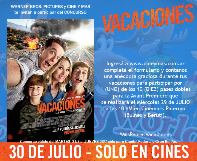 Junto a Warner Bros. Pictures te invitamos a ver la película en la función que se realizará el Miércoles 29 de Julio a las 10 AM. Completá el formulario que se encuentra más abajo y contanos una anécdota graciosa durante tus vacaciones. #MisPeoresVacaciones