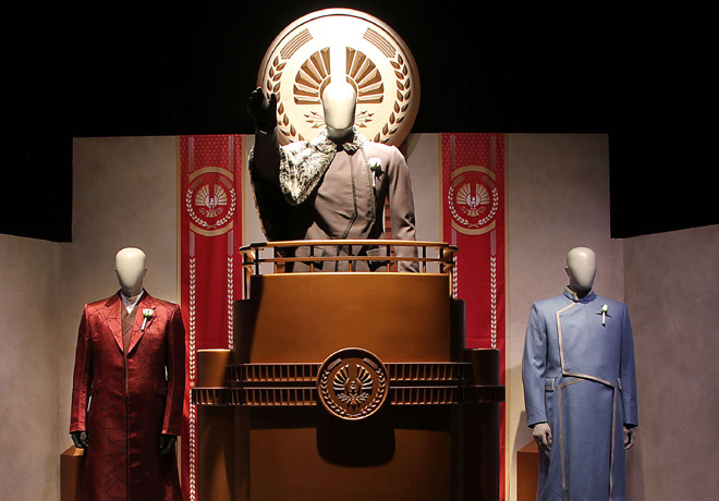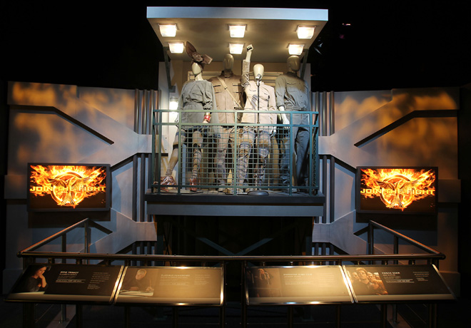 La muestra incluye cientos de piezas del vestuario original, escenografía, fotografías, experiencias interactivas, y recreaciones de los sets de filmación y ofrece a los visitantes la experiencia de adentrarse y explorar el mundo de Panem.