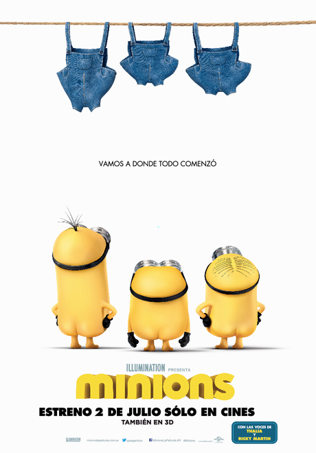 «Minions» es una presentación de United International Pictures. Dirigida por Kyle Balda y Pierre Coffin. Con las voces originales de Sandra Bullock, Jon Hamm, Michael Keaton, Allison Janney, Steve Coogan, Jennifer Saunders, Geoffrey Rush, Steve Carell y Pierre Coffin. Con las voces latinas de Thalía, Ricky Martin, Mariano Osorio, Irene Azuela, Alfonso Herrera, Martha Debayle, Edgar Vivar, Cassandra Ciangherotti y Óscar Uriel. Un guión de Brian Lynch.
