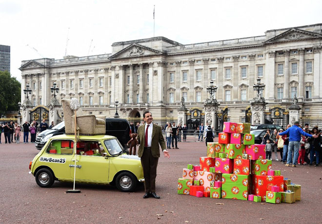Este mes, Mr. Bean, personaje icónico de la comedia británica, cumple 25 años. Como parte de la celebración, Rowan Atkinson recreó uno de sus sketches más memorables de la serie frente al Palacio de Buckingham, donde el pasado Viernes 4 de Septiembre llegó conduciendo su inconfundible Mini Cooper verde lima desde un sillón amarrado al techo, tal como lo hace en el acto 2 del episodio 9, «Do-It-Yourself Mr Bean», el cual salió al aire el 10 de Enero de 1994 (al pie del post compartimos el video).