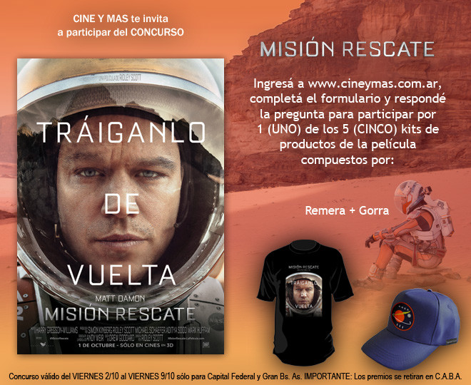 - El ganador será notificado via e-mail. El mismo será desde una dirección @cineymas.com.ar y el ganador deberá chequear su casilla correspondientemente. “Cine y más…” no se hace responsable si el mail de información de resultado del sorteo llegara a entrar a la bandeja de “no deseados” o “spam” y no aceptaremos excusas. Si la persona decidió participar, deberá estar atenta al resultado.