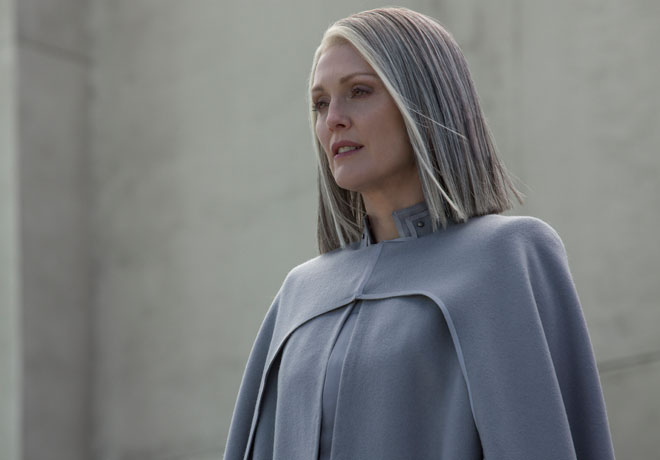 El relato de “Los Juegos del Hambre: Sinsajo – El Final” comienza donde acabó abruptamente su predecesora, debido a la división en dos con fines comerciales. Tan sólo unos pocos días después de que Peeta (Josh Hutcherson) fuera rescatado por los rebeldes y llevado al búnker subterráneo del Distrito 13, comandado por la presidente Alma Coin (Julianne Moore) y su asesor Plutarch Heavensbee (la participación de Philip Seymour Hoffman fue completada digitalmente), vemos a “La Chica en Llamas” (Jennifer Lawrence) sufriendo las consecuencias del intento de ahorcamiento por parte de su amigo, que está fuera de sí y que no sabe distinguir qué es real y qué no porque el Capitolio lo torturó, le lavó el cerebro y lo convirtió en un arma para asesinarla a ella mientras lo tuvo capturado.