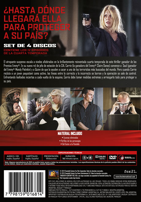 Un box-set de cuatro discos con los 12 episodios que componen este ciclo en el que hay una nueva amenaza en Medio Oriente y Carrie asume como jefa de estación de la CIA
