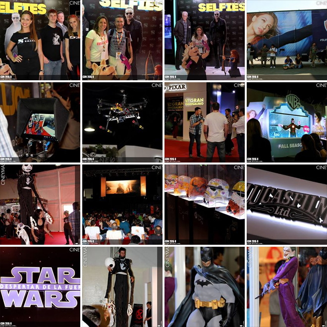 La Comic-Con contó con muchÃsimos stands de las principales distribuidoras cinematográficas. Entre ellas, 20th Century Fox (que ofreció photo opportunities con Deadpool y Snoopy y una terrorÃfica experiencia Victor Frankenstein), Disney con todo lo que se viene con «Star Wars: El Despertar de la Fuerza») y Warner Bros. Pictures con el auspicio ficticio de Lexcorp, la corporación de Lex Luthor, con motivo de «Batman vs. Superman: El Origen de la Justicia») y de los canales de cable Warner Channel (con stand interactivo de los nuevos estrenos de su Fall Season: «Blindspot» y «Supergirl») y Syfy, presentando «Killjoys».