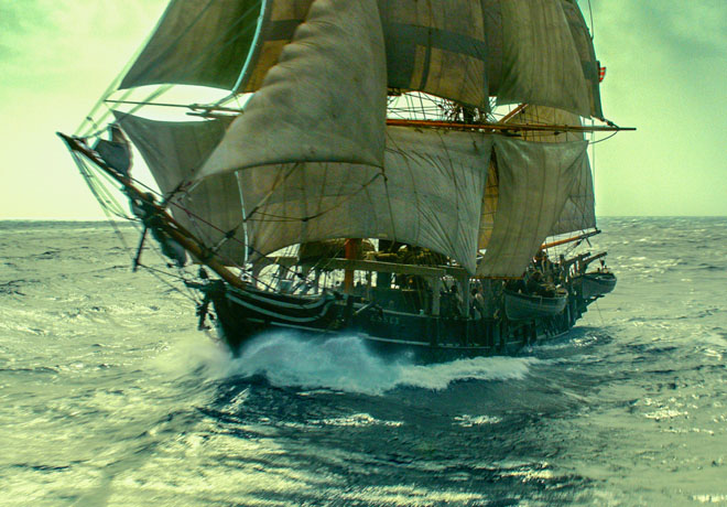 La entrevista es la excusa y el marco para narrar los hechos sucedidos hace más de30 años. A partir de flashbacks de larga duración, el film no sólo se centra en preparativos de la expedición de dos años por las costas de Sudamérica con el objetivo de llenar barriles con aceite de ballena, sino también en la rivalidad entre dos hombres muy opuestos con un mismo objetivo: ser el capitán del Essex.