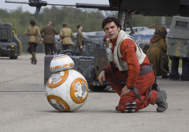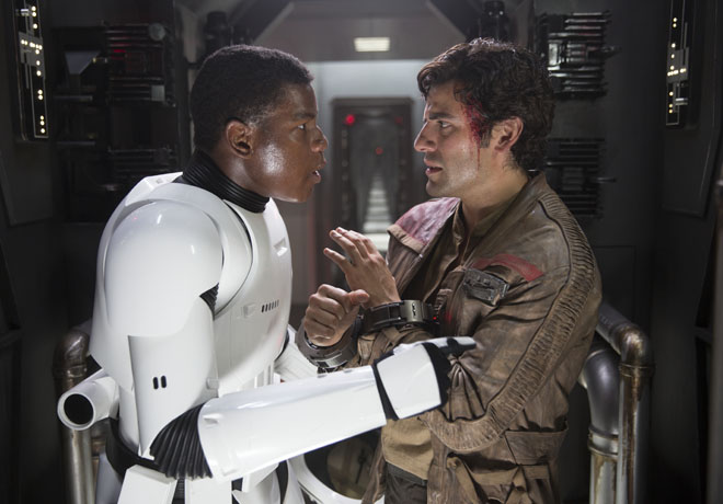 Ok, y ¿la historia? se preguntarán… A eso voy. La historia comienza con un Piloto rebelde de X-Wing, Poe Dameron (Oscar Isaac) en un planeta desértico (Jakku), con un androide que contiene un mapa (BB-8), que cae en manos de una chatarrera huérfana llamada Rey (Daisy Ridley) que se junta con Finn (John Boyega), que es un Stormtrooper que acaba de desertar de la “Primera Orden”, que es algo así como una continuación del antiguo Imperio Galáctio, dirigido por el Líder Supremo Snoke (Andy Serkis) cuyo aprendíz de sith es Kylo Ren (Adam Driver) y ambos detectan un despertar en la fuerza. Rey y Finn tienen que dejar todo de lado para iniciar un viaje de aventuras que les cambiará las vidas para siempre.