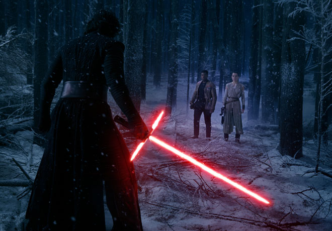 Hoy es el día. Se estrenó por fin el tan ansiado «Episodio VII – El Despertar de La Fuerza» y es algo impresionante. Es nuevo, pero a la vez respeta mucho la frescura de la película original de 1977. El planeta desierto, Jakku (que no es Tattoine); un planeta muy parecido a Yavin IV en donde tienen su base los rebeldes; Han (Harrison Ford), Chewie (Peter Meyhew), Leia (Carrie Fisher)… ¿Luke? (Mark Hamill)… Jedis, Sith, Tie Fighters, X-Wings y Starkiller, algo así como una nueva Death Star, pero terriblemente más grande. Tiene todos lo que uno pueda soñar y más.