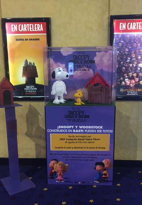¡Snoopy y Woodstock hechos en Rasti, pueden ser tuyos y a beneficio! Los simpáticos personajes de la película “Snoopy y Charlie Brown – Peanuts La Película», que se estrenará el 7 de Enero, fueron construidos en las clásicas piezas y serán exhibidos en los complejos de cines Village Recoleta y Village Pilar hasta el 20 del mencionado mes para luego ser sorteados por la Fundación Natalí Dafne Flexer.