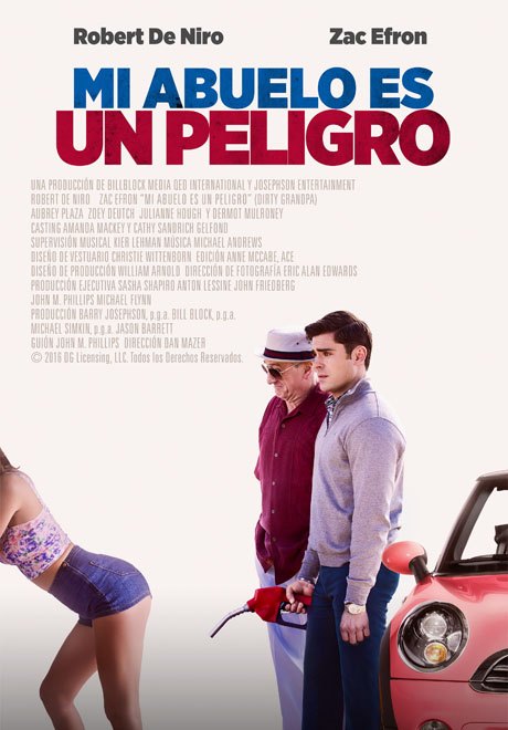 Zac Efron y Robert De Niro protagonizan juntos en «Mi Abuelo es un Peligro» (Dirty Grandpa), una comedia zarpada dirigida por Dan Mazer, productor de casi todos los proyectos de Sacha Baron Cohen (como «Da Ali G Show», «Borat: El Segundo Mejor Reportero del Glorioso paÃs Kazajistán viaja a América», «Brüno» y «El Dictador») que la distribuidora Diamond Films Argentina estrena el Jueves 18 de Febrero.