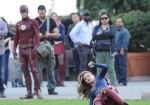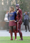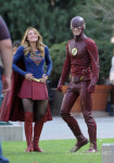 A 20 días del anuncio de la realización del «The Flash» y «Supergirl», se conocieron algunas imágenes desde el set de rodaje, exclusivas de ComingSoon.net en las que vemos a Melissa Benoist (Kara Danvers/Supergirl) junto a Grant Gustin (Barry Allen/TheFlash) listos para enfrentarse a la villana Silver Banshee, interpretada por Italia Ricci.