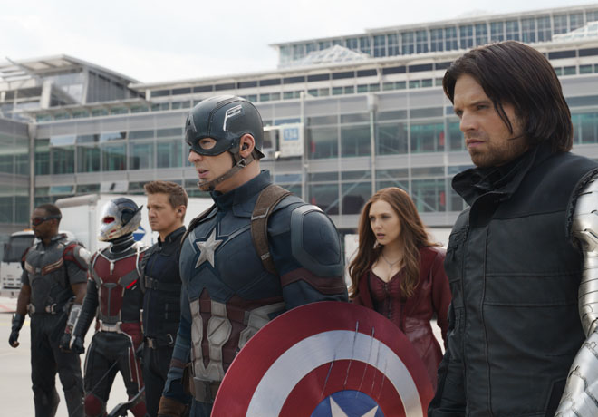 «Capitán América: Civil War» (Captain America: Civil War) es una presentación de Walt Disney Studios Motion Pictures. Dirigida por Anthony Russo y Joe Russo. Protagonizada por Chris Evans, Robert Downey Jr., Scarlett Johansson, Sebastian Stan, Jeremy Renner, Don Cheadle, Anthony Mackie, Paul Bettany, Elizabeth Olsen, Daniel Brühl, Emily VanCamp, Marisa Tomei, Tom Holland, Chadwick Boseman, Paul Rudd, Frank Grillo y William Hurt. Un guión de Christopher Markus y Stephen McFeely, basado en el comic creado por Mark Millar y en los personajes creados por Joe Simon y Jack Kirby.