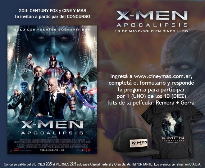 En la nueva entrega de la franquicia, los X-Men luchan contra el primer y más poderoso mutante: Apocalipsis. De la mano de 20th Century Fox, sorteamos 10 kits de productos promocionales de la película. Completá el formulario que se encuentra más abajo y respondé la pregunta.