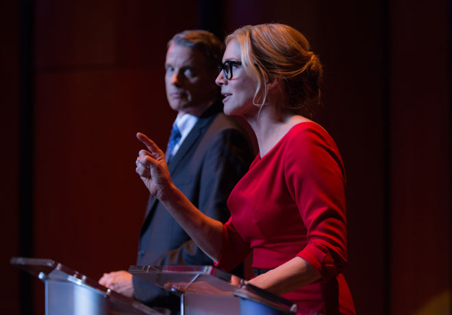 Claro que “Los Nuevos Padres Fundadores de Norteamérica”, cuyo principal candidato es el retorcido ministro Edwidge Owens (Kyle Secor), no quieren que la señora logre abolir la medida con la que el oficialismo elimina a las personas más pobres y sin hogar. Por eso, a diferencia de otros años, esta vez nadie esta exento de la misma, ni los privilegiados ni los políticos… eso la incluye a la rubia senadora.