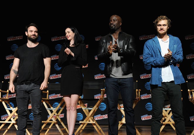 La presentación finalizó con una sorpresa. El elenco de la próxima serie original de Netflix, «Marvel’s The Defenders», se unió por primera vez en el escenario: Charlie Cox (Matt Murdock/Daredevil), Krysten Ritter (Jessica Jones), Mike Colter (Luke Cage) y Finn Jones (Iron Fist). También se anunció que Sigourney Weaver será la nueva villana aunque aún no se especificó su papel.