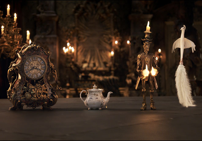 Luke Evans (Gaston), Ewan McGregor (Lumiere), Gugu Mbatha-Raw (Plumette), Ian McKellen (Cogsworth), Josh Gad (Le Fou), Emma Thompson (Mrs. Potts), Stanley Tucci (Cadenza) y Kevin Kline (Maurice), completan el reparto.