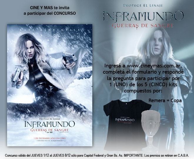 Kate Beckinsale regresa como vampiresa guerrera Selene en la quinta entrega de la franquicia que ahonda en la interminable lucha entre vampiros y licántropos. Con motivo del estreno de «Inframundo: Guerras de Sangre», sorteamos 5 kits de productos promocionales. Completá el formulario que se encuentra más abajo y respondé la pregunta.