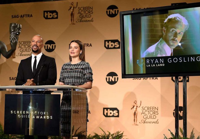 Previas palabras de la presidenta de SAG-AFTRA, Gabrielle Carteris (la recordada Andrea Zuckerman de “Beverly Hills 90210”), la actriz Sophia Bush (la detective Erin Lindsay de «Chicago P.D.») y el cantante y actor Common («Selma») fueron los encargados de anunciar 13 categorías: ocho de televisión, liderada por «The Crown»; y cinco correspondientes a cine, con el film «Manchester by the Sea» a la cabeza.