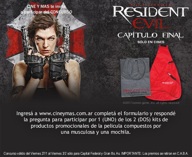 Se estrenó la sexta y última entrega basada en la franquicia de videojuegos de Capcom y nos despedimos de Alice sorteando dos kits de productos promocionales de la película, gentileza de United International Pictures. Completá el formulario que se encuentra más abajo y respondé la pregunta.