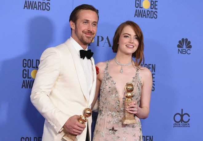 En la categoría cine, «La La Land» fue la gran ganadora. La película, una historia musical de amor, escrita y dirigida por Damien Chazelle, se llevó las siete estatuillas a las que aspiraba: Mejor Película – Musical o Comedia, Mejor Director, Mejor Actor – Musical o Comedia (Ryan Gosling), Mejor Actriz – Musical o Comedia (Emma Stone), Mejor Guión (Chazelle), Mejor Canción Original (Justin Hurwitz, Benj Pasek y Justin Paul) y Mejor Banda Sonora (Justin Hurwitz ).