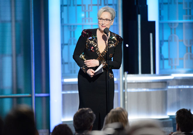 Fue una noche que tuvo sus momentos destacables pero nada más. Hubo homenajes a las recientemente fallecidas Carrie Fisher y Debbie Reynolds, y Meryl Streep recibió el premio a la trayectoria, momento que aprovechó para brindar el discurso más profundo de la velada y que tuvo que ver con Trump, quien -recordemos- está en contra de la comunidad artística, los extranjeros y la prensa.
