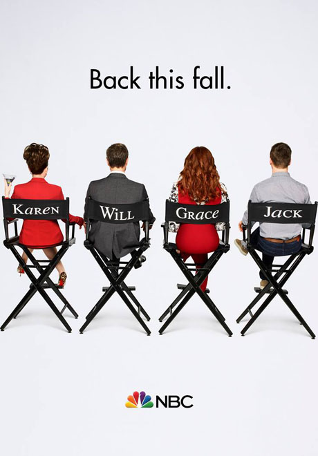 Y siguiendo con la moda de los revivals, ahora le toca el turno a «Will & Grace». La exitosa comedia protagonizada por Debra Messing, Eric McCormack, Sean Hayes y Megan Mullally, que se emitió entre 1998 y 2006, regresa a NBC con una novena temporada de 12 capítulos que llegará en Septiembre al mencionado canal, el cual lanzó dos posters promocionales.