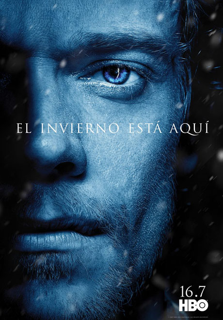 Todos ellos tienen un detalle en común y no es sólo el lema «El invierno está aquû (Winter is Here). En los ojos de cada uno de los actores se ve reflejado el rostro del Rey de la Noche (The Night King), el lÃder del ejército de los «Caminantes Blancos» (White Walkers) que amenaza con matar a cada uno de los habitantes de Poniente, sin excepción.