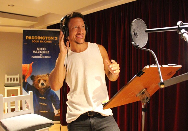 Nicolás Vázquez presta su voz a Paddington. Convocado por la distribuidora DIGICINE, el actor argentino, quien actualmente se encuentra protagonizando la exitosa obra teatral «El Otro Lado de la Cama», ya se encuentra participando del doblaje de la versión local de la secuela sobre el adorable osito peruano creado por el británico Michael Bond.