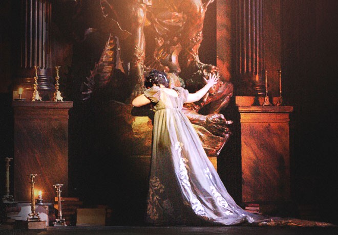 Una iglesia Iluminada con velas, el sombrÃo despacho de Scarpia con su cámara de torturas escondida y el falso optimismo de un amanecer romano: esta atractiva producción pone de relieve el drama despiadadamente intenso al tiempo que la tensión va aumentando hacia una fatÃdica conclusión.