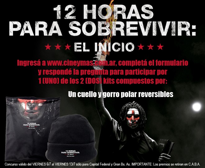 - El ganador será notificado via e-mail. El mismo será desde una dirección @cineymas.com.ar y el ganador deberá chequear su casilla correspondientemente. “Cine y más…” no se hace responsable si el mail de información de resultado del sorteo llegara a entrar a la bandeja de “no deseados” o “spam” y no aceptaremos excusas. Si la persona decidió participar, deberá estar atenta al resultado.