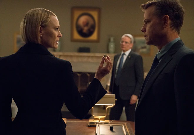 A pesar del ascenso al poder, la lucha por mantenerse en la cima no ha terminado para Claire (Robin Wright), ya que ambos nominados al Premio de la Academia interpretan a Annette Shepherd y Bill Shepherd, dos hermanos herederos de Shepherd Unlimited, un conglomerado industrial lÃder cuyas fundaciones familiares ejercen una poderosa fuerza detrás del panorama polÃtico estadounidense.