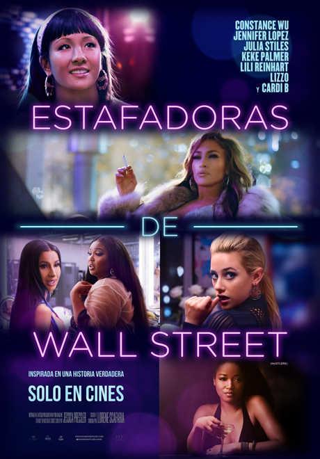 «Estafadoras de Wall Street» (Hustlers) es una presentación de Diamond Films. Dirigida por Lorene Scafaria. Protagonizada por Jennifer Lopez, Constance Wu, Julia Stiles, Lili Reinhart, Cardi B, Keke Palmer y Lizzo. Un guión de Jessica Pressler y Lorene Scafaria, basada en hechos reales.