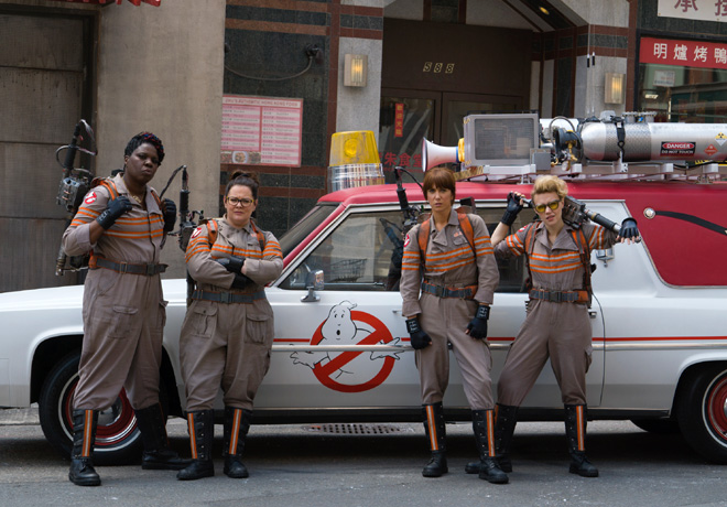 Primera foto de las «Cazafantasmas». Publicado 14/07/2015 Paul Feig publicó la imagen en su cuenta de Twitter en la que se ve a Leslie Jones, Melissa McCarthy, Kristen Wiig y Kate McKinnon posando con sus trajes adelante del nuevo Ecto-1. Sigue leyendo →