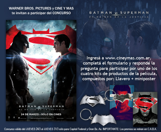 Tras una larga espera, Batman y Superman aparecen juntos por primera vez en la pantalla grande. Por este motivo, sorteamos 4 kits (gentileza de Warner Bros. Pictures) de la pelÃcula que se estrenó en nuestro paÃs este Jueves 24 de Marzo. Sigue leyendo