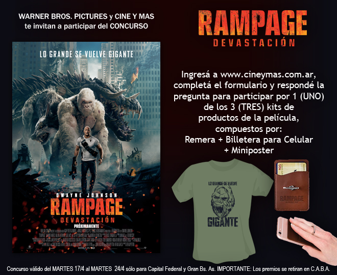 Dwayne Johnson vuelve a formar aequipo con el director Brad Peyton ("Terremoto: La Falla de San Andrés") en esta espectacular adaptación del videojuego de Arcade de 1986. Estreno en Argentina: 19 de Abril de 2018. Sigue leyendo